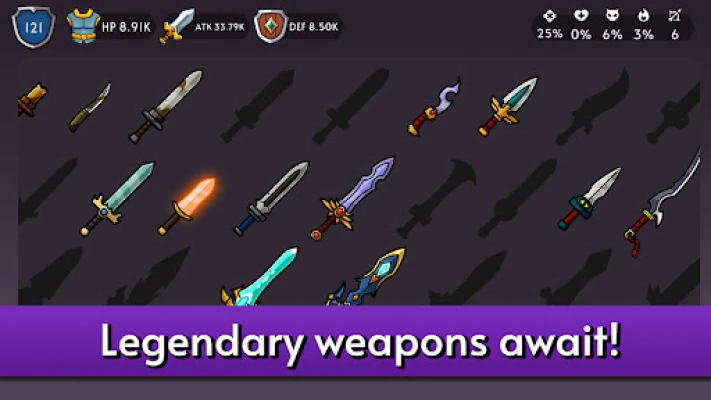Collect and upgrade a wide range of swords, shields, helmets, and legendary armor sets. Customize your Hero’s look and boost battle stats with gear that fits your play style - whether you prefer strong defense or powerful attacks. Keep upgrading to dominate every fight!