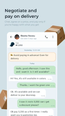 Use Jiji Chat to communicate and discuss all product details or delivery options conveniently;