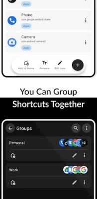 You can create unlimited shortcuts and groups on your home screen and up to 15 tiles in your quick settings using Quikshort.
