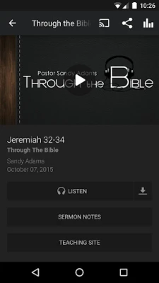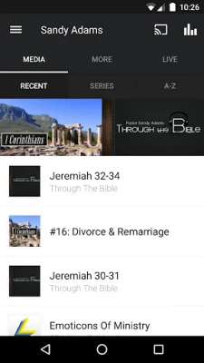 The Sandy Adams app was developed with the Subsplash App Platform.